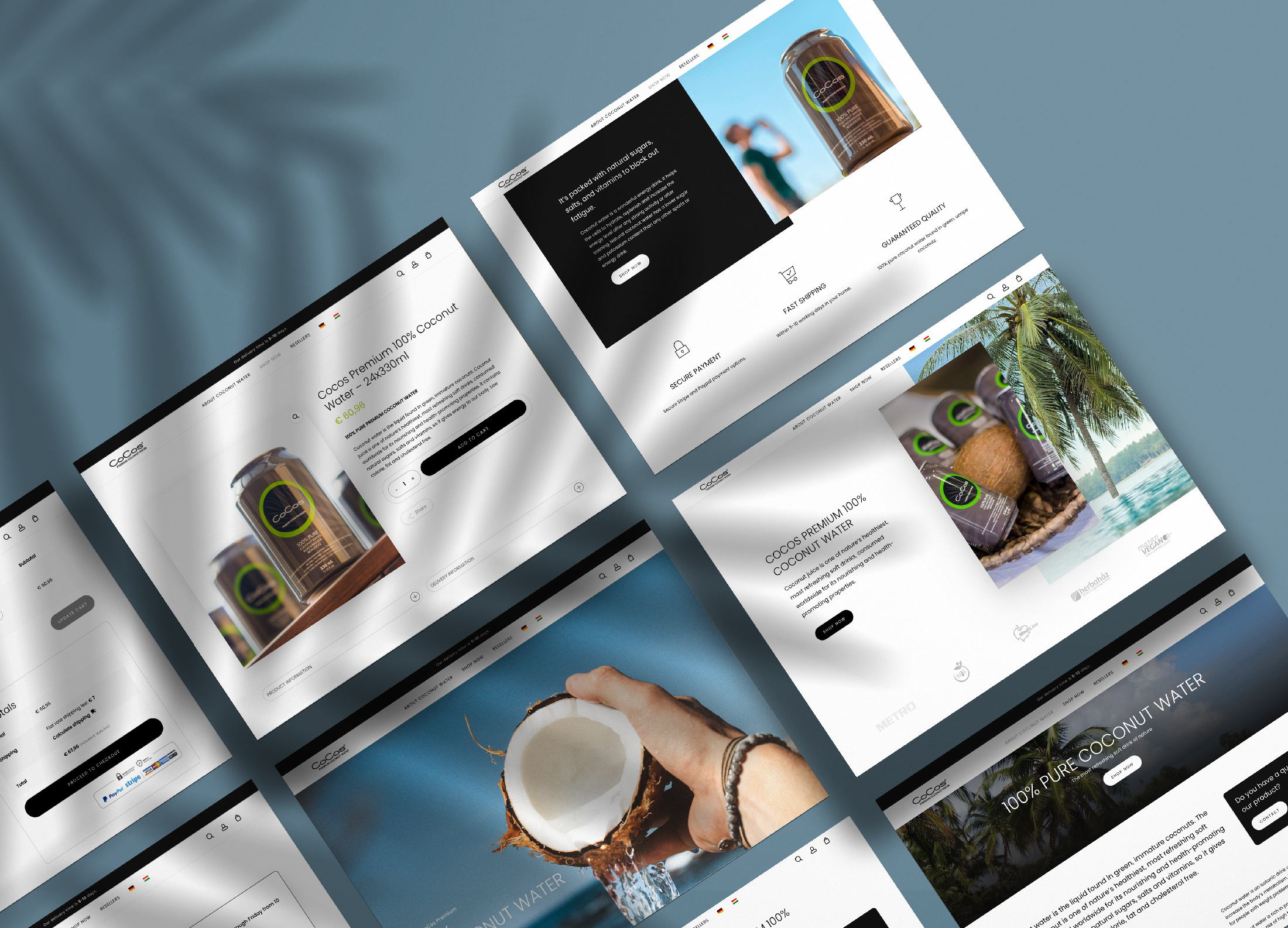 A CoCos projekt egy kókuszvíz márka e-kereskedelmi weboldalának fejlesztésére irányult. Egy elegáns és felhasználóbarát webshopot terveztünk és valósítottunk meg, amely bemutatja a márka frissítő termékét, egyszerűsíti a vásárlási élményt, valamint megkönnyíti a navigációt és a biztonságos tranzakciókat a vásárlók számára.